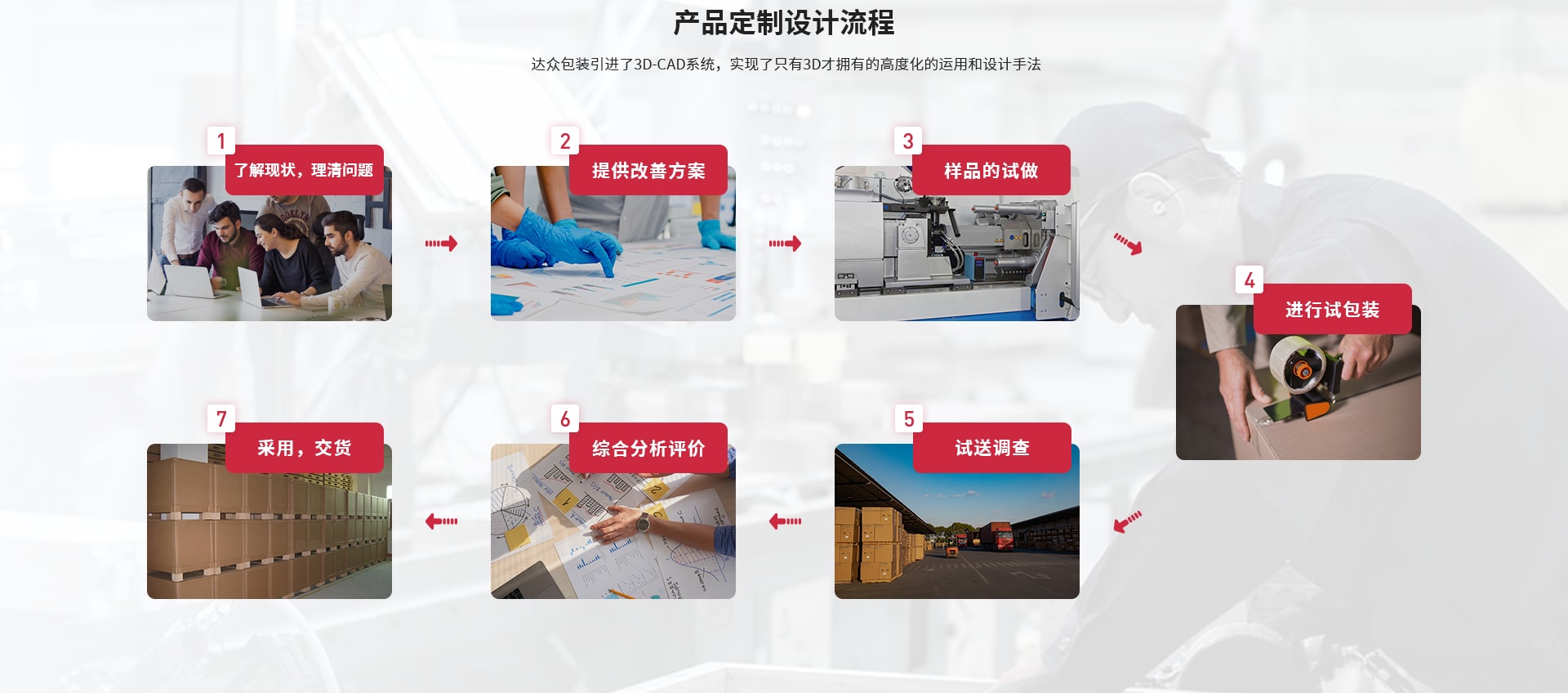 The factory has a professional design team and domestic advanced production equipment, and participates in customer project development and enterprise innovation all year round. Dazhong packaging has the unique senior box design and graphic design ability, and has introduced the 3D-CAD system to realize the high-level application and design techniques that only 3D has. In terms of quality assurance, Dazhong packaging has passed the ISO9001:2008 quality management system certification of China Quality Certification Center (CQC), and obtained the production qualification of packaging containers for export dangerous goods through the examination of entry exit inspection and Quarantine Bureau.